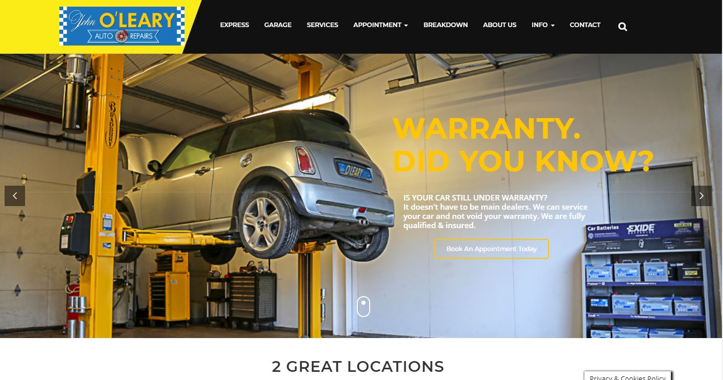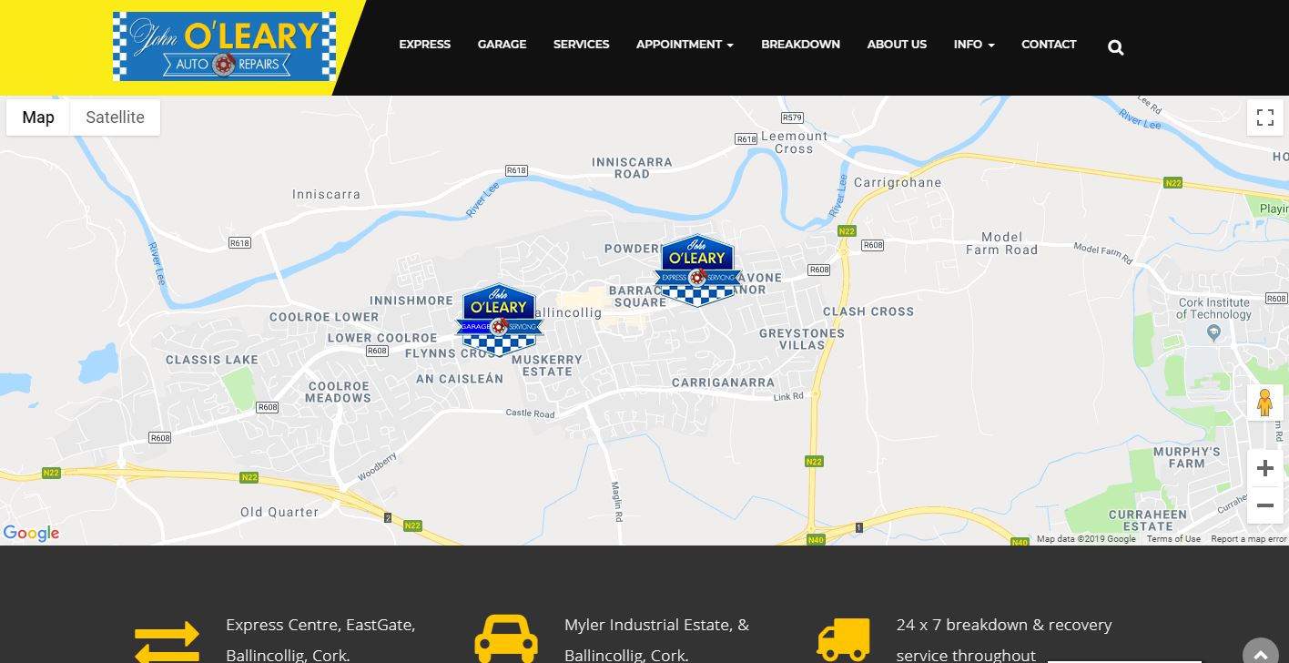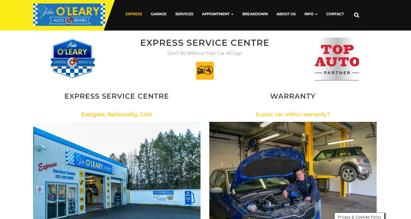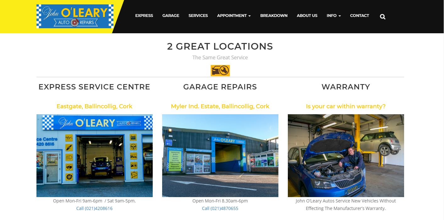 John O’Leary Autos opened in Ballincollig in 2015 and have grown to have 2 premises in the town since then – a full service garage at Myler Industrial Estate, and an Express Centre at EastGate. This site showcases both centres and has a comprehensive service / repairs appointment system.