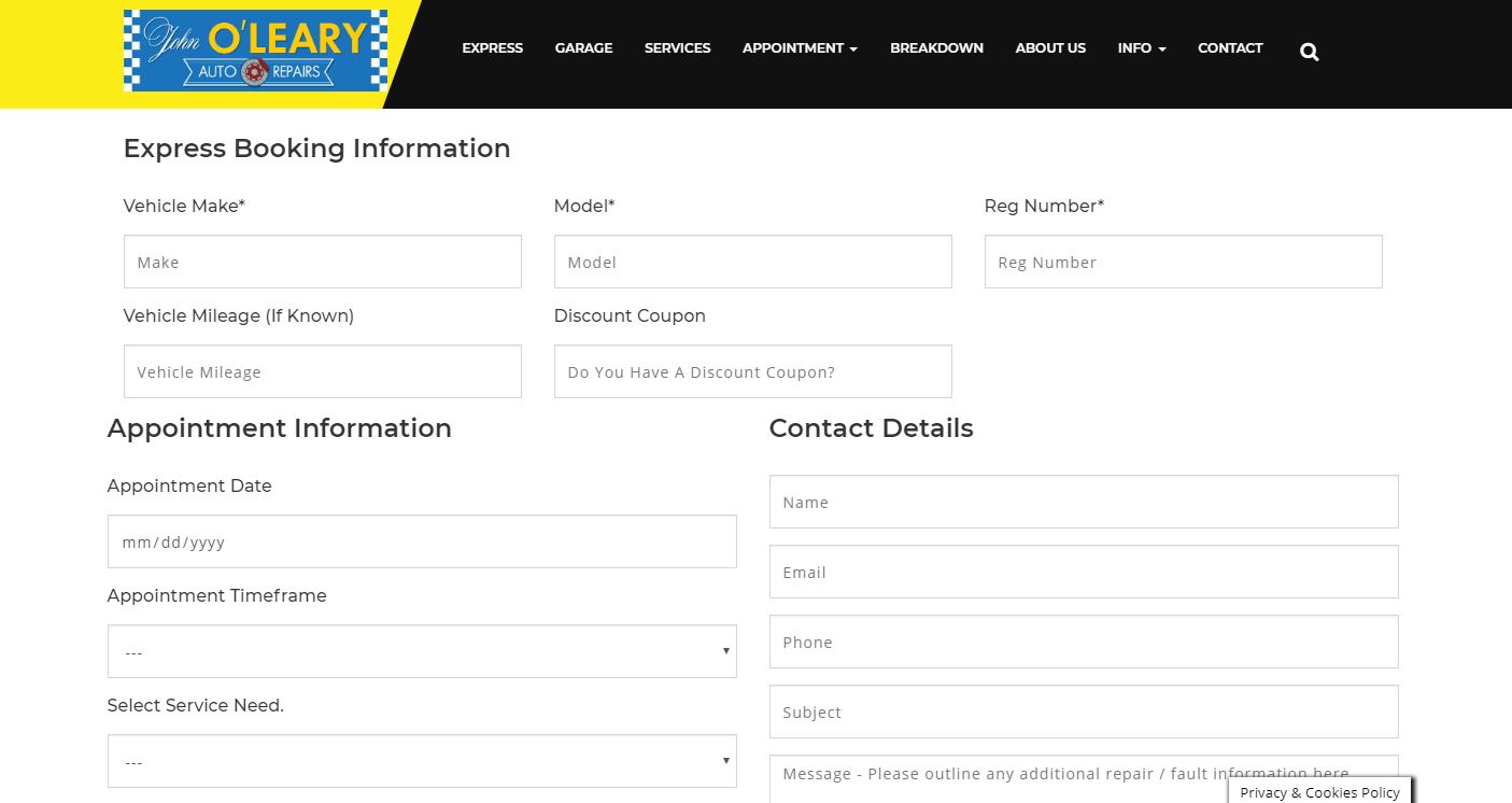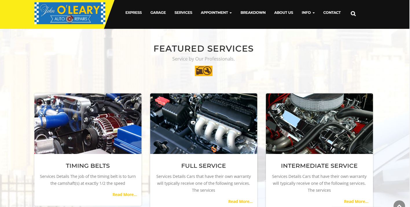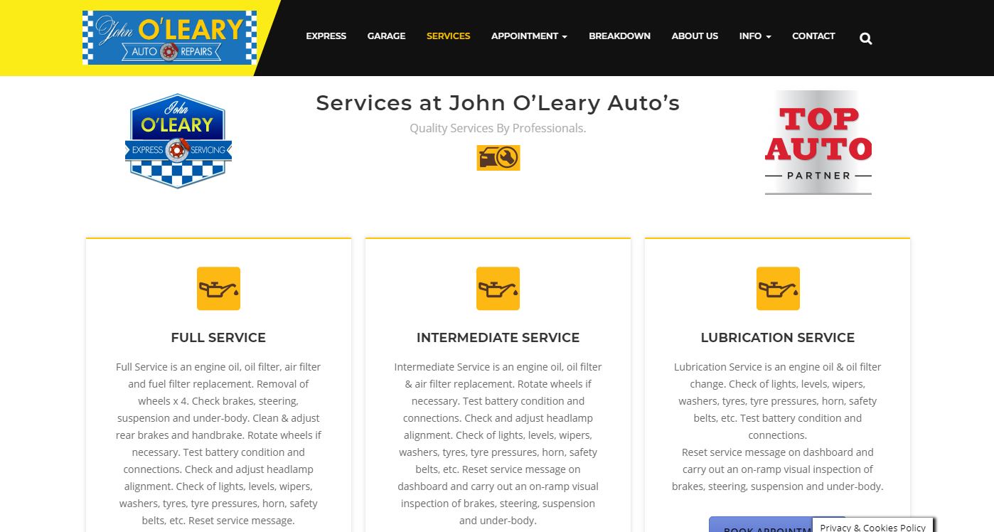 John O’Leary Autos opened in Ballincollig in 2015 and have grown to have 2 premises in the town since then – a full service garage at Myler Industrial Estate, and an Express Centre at EastGate. This site showcases both centres and has a comprehensive service / repairs appointment system.